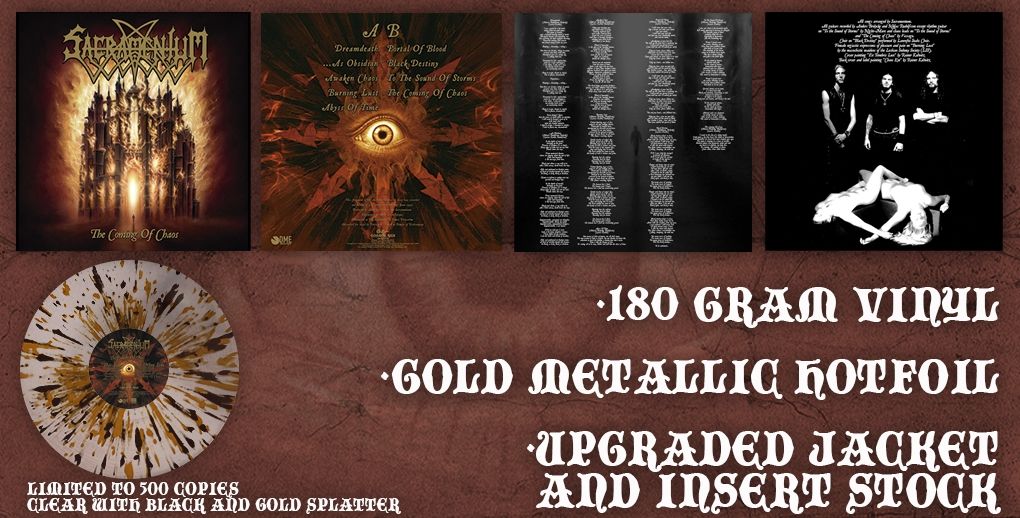 Melodic black metal from Fallköping, Sweden. The Coming Of Chaos was Sacramentum's 2nd album and their first album for Century Media who released it in 1997.