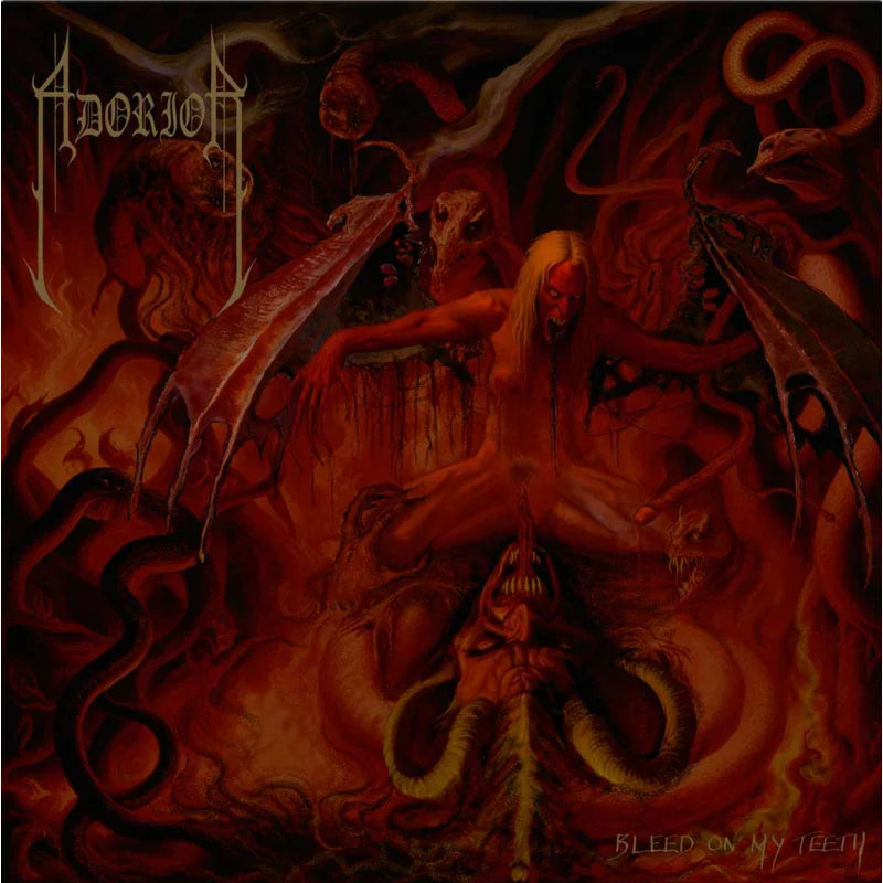After almost two decades, Adorior rise again to rape all virgin ideals of heavy fuckin´ Metal with their third full length. Armed to the bloody teeth with hellish sound, sharpest tongue, offensive artwork, outlaw attitude and leper morals, they are once again blazing a trail, whether you like it or not. Just like on their predecessor “Author of Incest” from 2005, the entity performs at an unrivalled and unimaginable level of aggression. “Bleed on my Teeth” has alot of dirt under its fingernails, but finally reanimates the corpse of mindfucking, repulsive and dangerous music of the devil without giving an inch to newer genre definitions. “Bleed on my Teeth” comes with a huge poser filter! This album is a summoning for the black-hearted survivors of this diseased and treacherous world. You will feel this record like it was tattooed into your bones, and if you don’t, then fuck off and pray you never will!